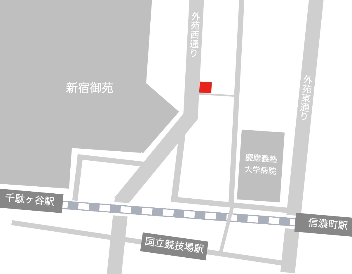 千駄ヶ谷・国立競技場駅から徒歩5〜6分。都心にありながら、落ち着いた環境でご利用いただけます。