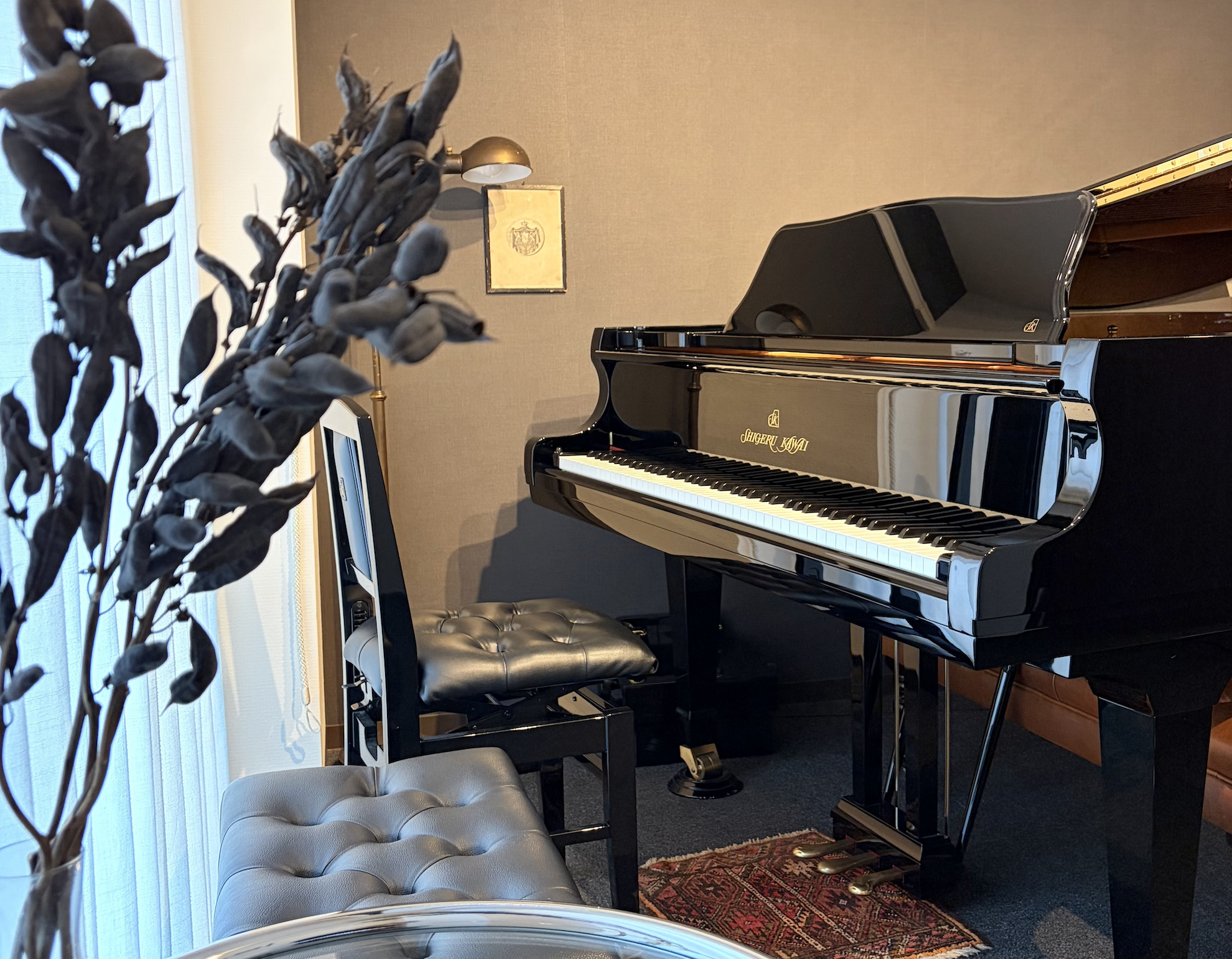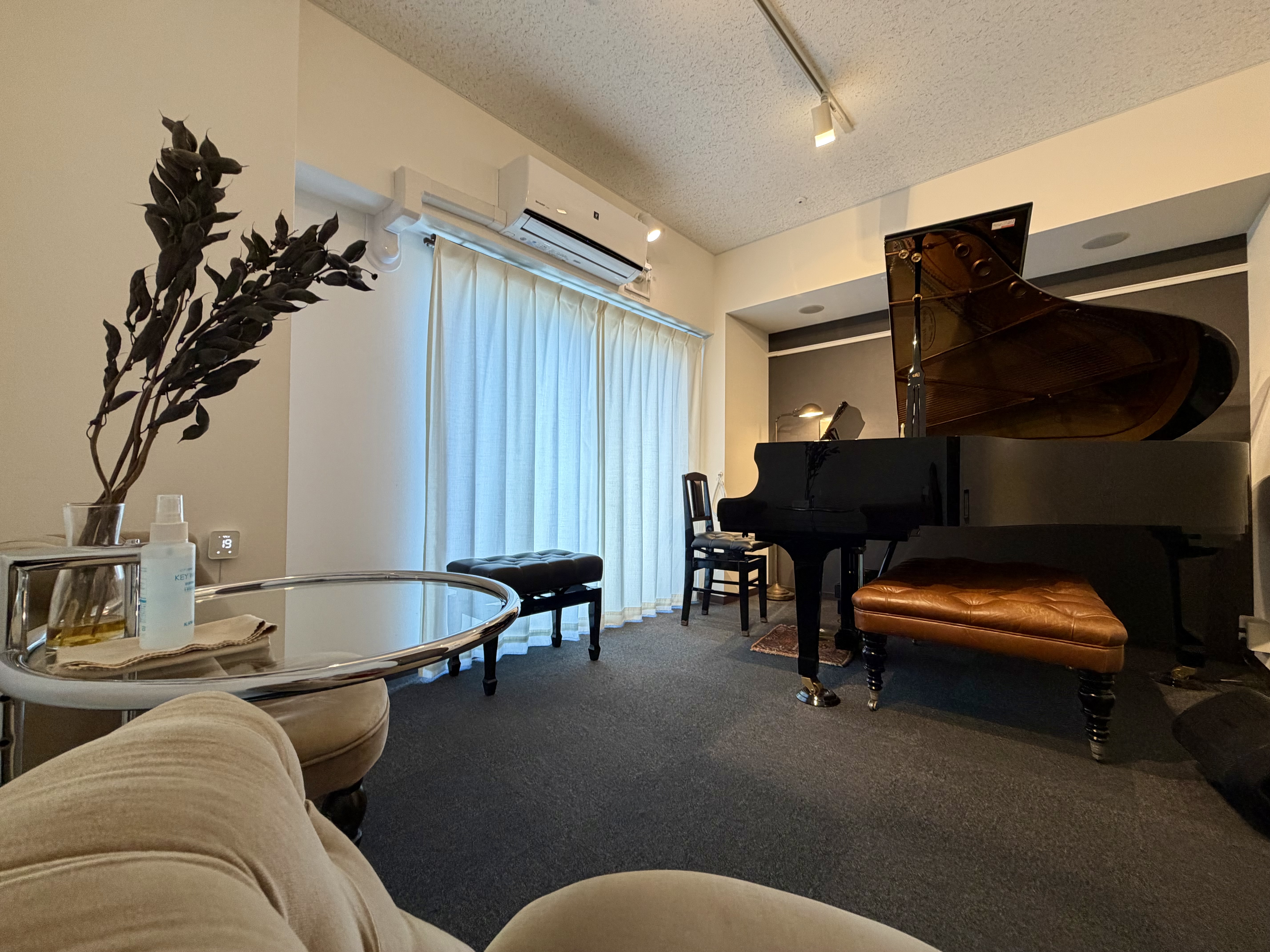 都会の喧騒を忘れ、音に集中できる空間。Shigeru Kawai SK-3の豊かな響きに感動しました。自宅のような快適さです。